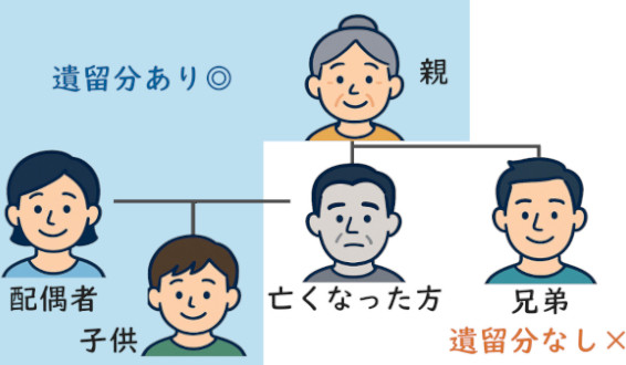 同じ相続人でも、兄弟姉妹には遺留分が認められていない点が大きな特徴です。